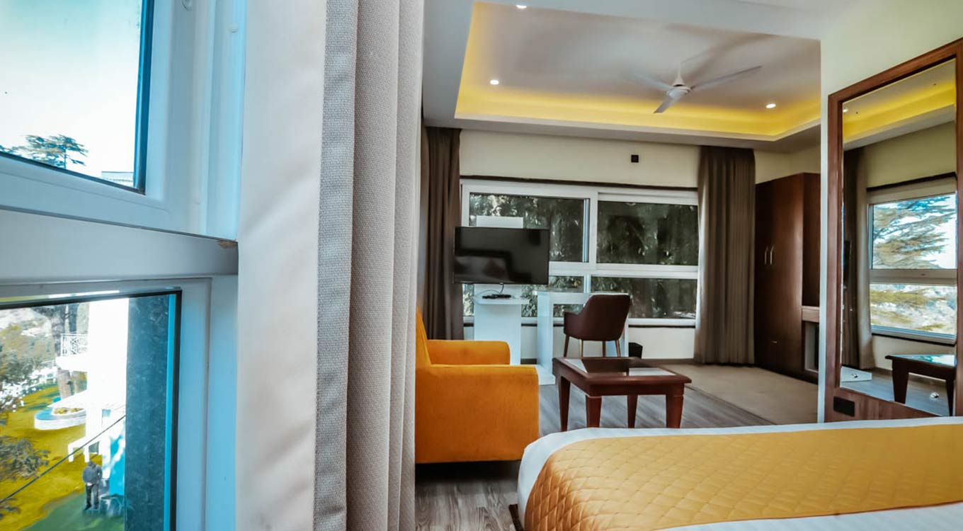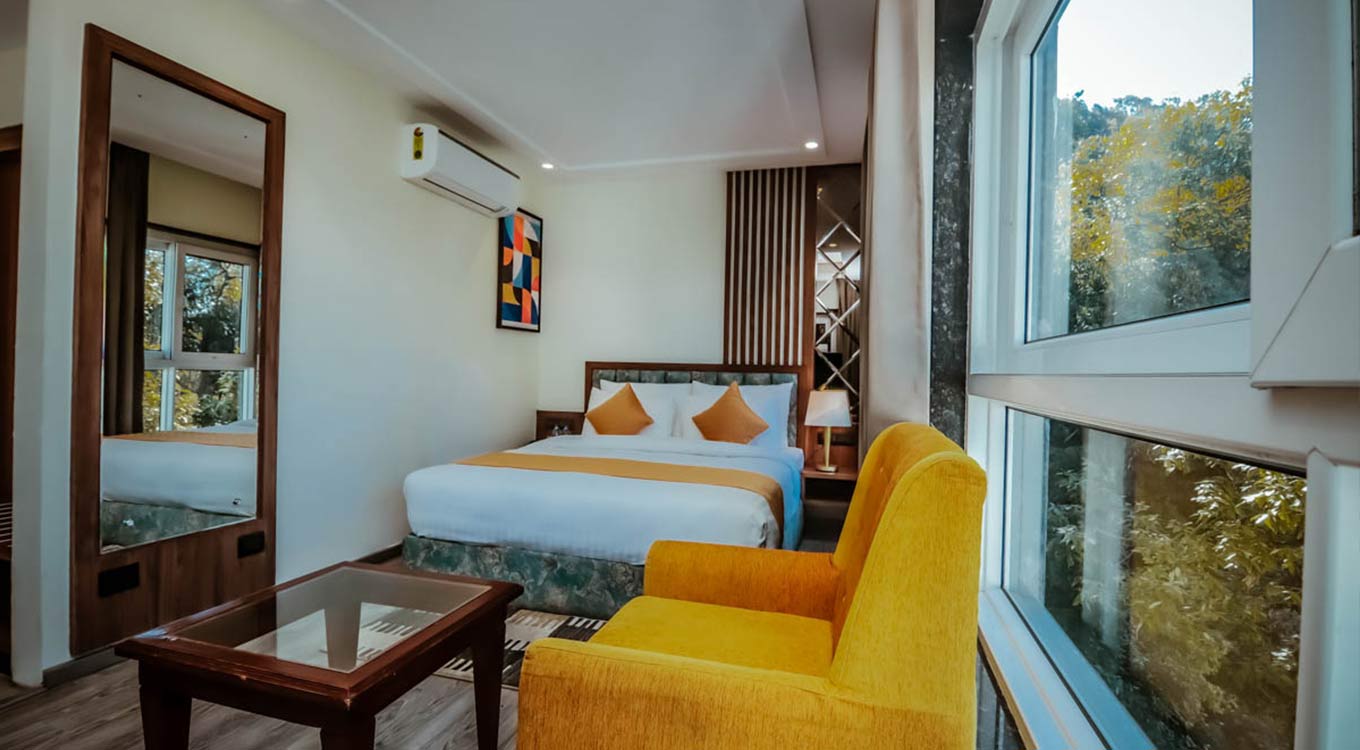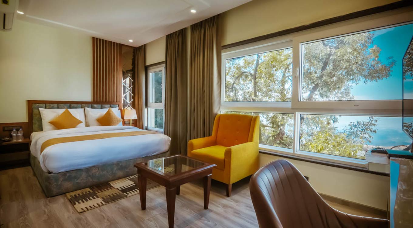 Experience luxurious comfort in the Club Stellar Rooms, boasting an expansive 320 sq.ft of space and breath-taking valley views. Central air-conditioning keeps temperatures comfortable all year-round while tea and coffee makers add to your enjoyment. Safety is of utmost concern: fully automatic doors as well as in-room safes add to this feeling of serenity in Mussoorie.