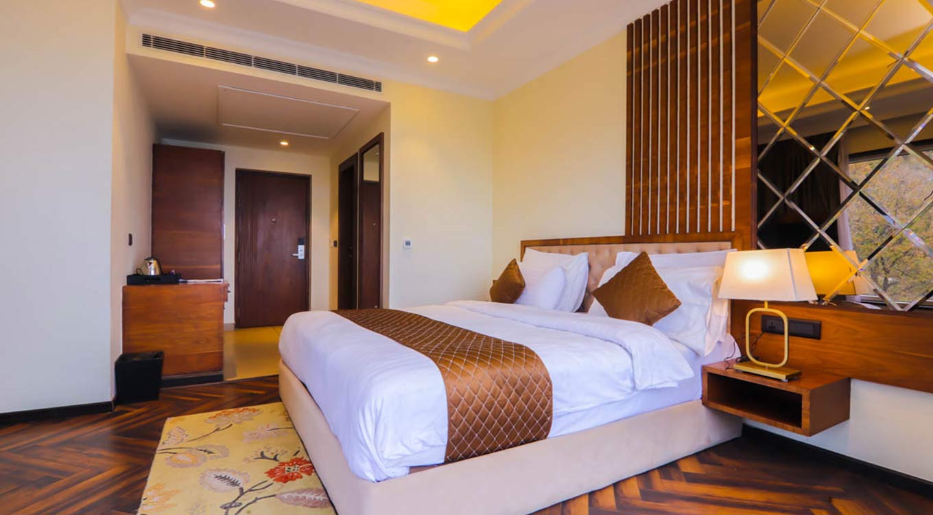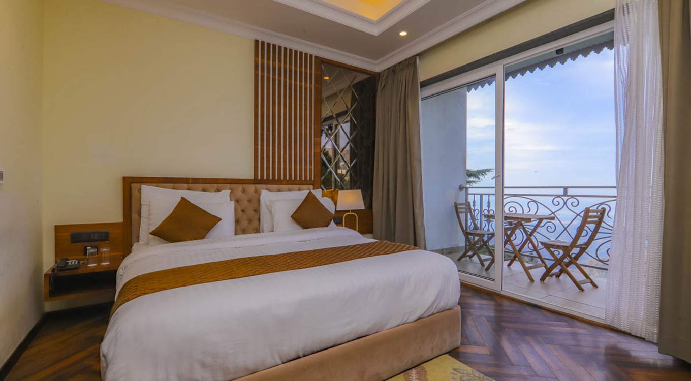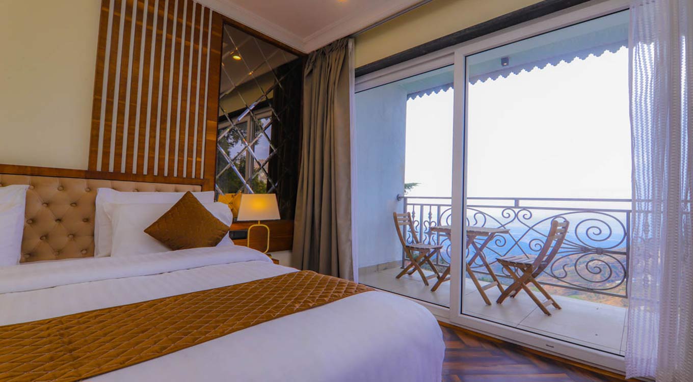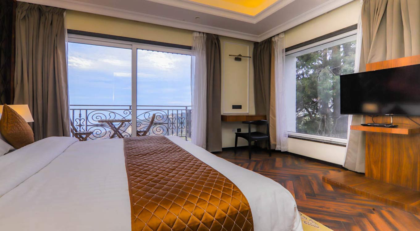 Our Premium Rooms will elevate your experience, featuring an expansive 300 sq ft area and private terrace overlooking the valley. These centrally air-conditioned rooms are the height of luxury with tea and coffeemakers available upon request and seamless convenience provided by fully automatic doors - not to mention peace of mind knowing your valuables are secure in an in-room safety deposit box! Kick back on a king-sized mattress while taking in uninterrupted valley views!